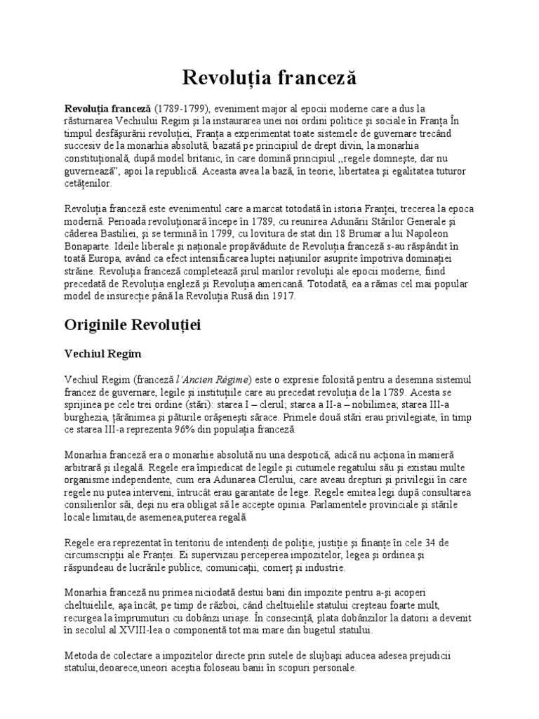 Menținerea vechii împărțirii a societății pe stări starea 1 cler starea 2 nobilimea starea 3 burghezia. Revoluția franceză în memorii, jurnale și biografii. Revoluția franceză a început în 1789, odată cu luarea bastiliei.