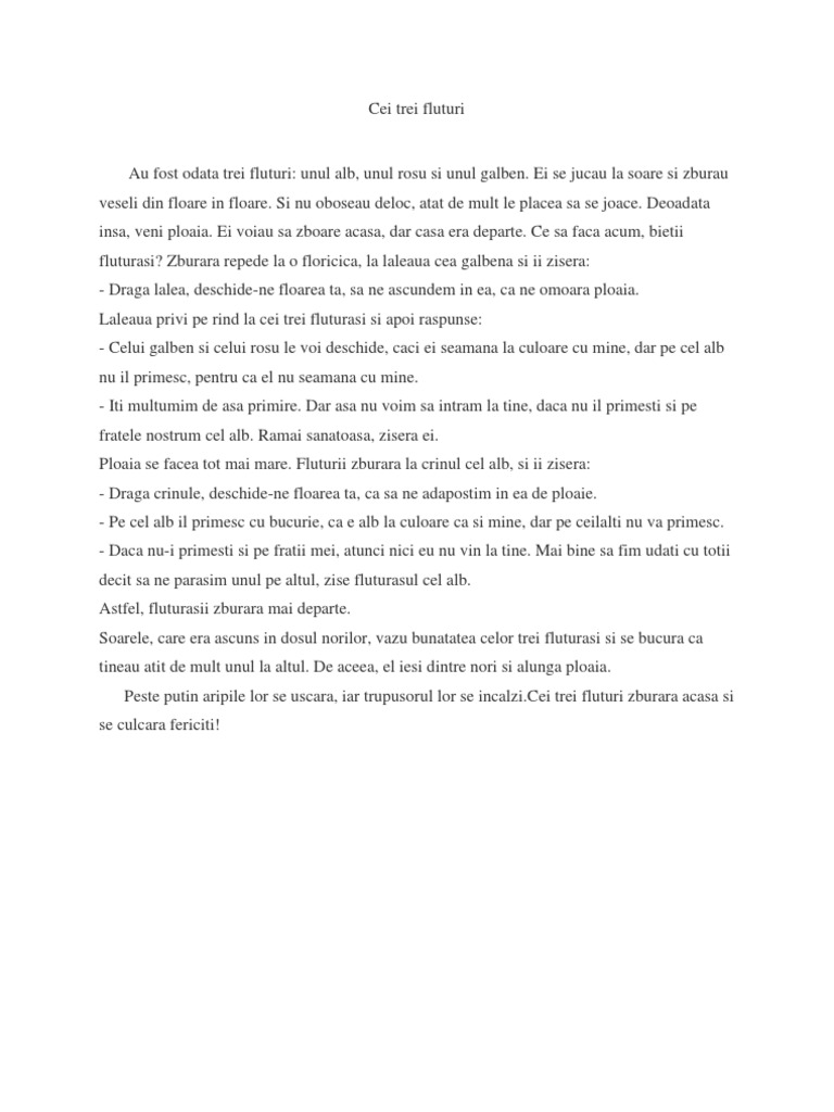Cei trei dansau cât era ziua de lungă în jurul florilor din grădină, se jucau voioşi în lumina soarelui şi nu se plictiseau nicio clipă pentru că erau foarte fericiţi. Povesti de toamna scurte poze cu fete in creion ponei de vânzare olx poze bebe 9 luni poze cu mașini de colorat poze cu jocuri poveste pt copii povesti alba ca zapada. Trei fluturi poznasi apar ca de nicaieri.