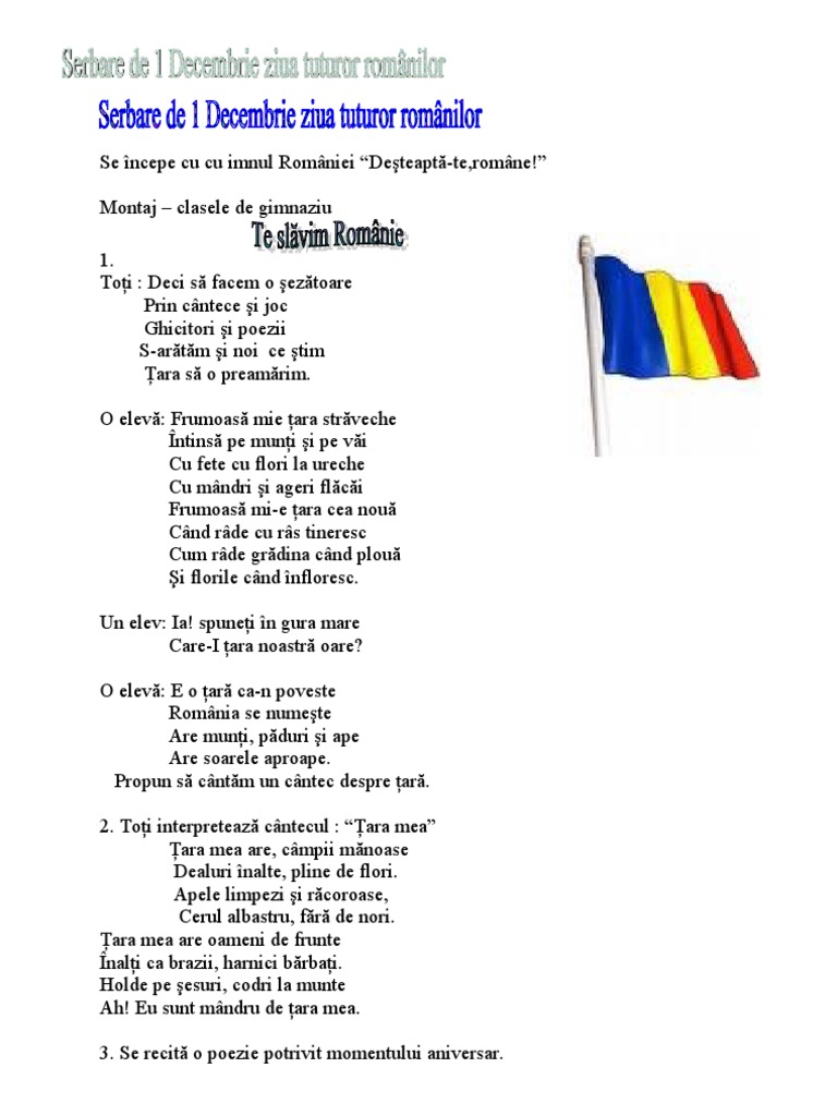 1 decembrie cantece patriotice ziua nationala a romaniei. În 13 decembrie 2010 | bebitzuluy a întrebat: Comunicat de master serv travel srl.