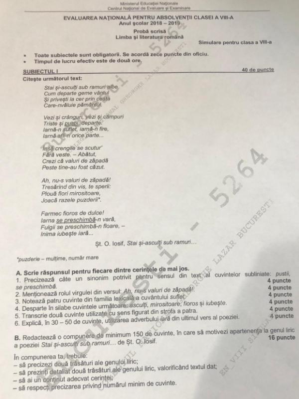 Subiecte evaluare nationala 2019 la limba romana. Repere teoretice, 60 de teste, brosura rezolvari complete. Intre subiectele la romana la evaluare nationala 2019, elevii au primit un fragment un fragment din ultima cursa, de horia lovinescu, scrie hotnews.ro.