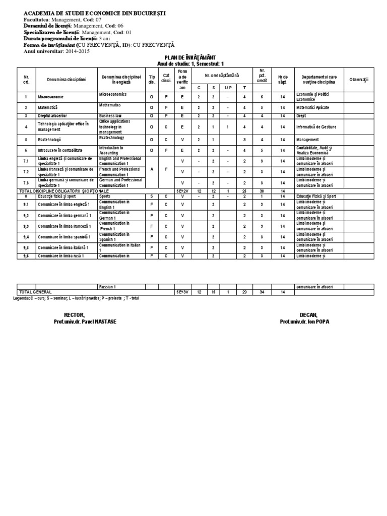 1 plan de nv|mnt rector, profesor univ. Noţiuni de virusologie, bacteriologie si parazitologie. Adaptarea permanenta a planului de invatamant la cerintele pietei muncii a determinat si unele modificari ale curiculei, de la un an la altul.