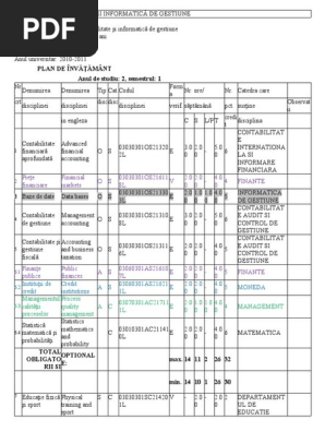 Contabilitate şi informatică de gestiune accounting and management information systems. Planul de învățământ, managementul resurselor umane, masterat, 2019.
