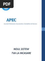 Dacă o persoană se înregistrează în scopuri de tva prin opțiune și dorește să aplice sistemul de tva la încasare, atunci la momentul înregistrării în scopuri de tva, depune și formularul 097. Plafonul anterior a fost 2.250.000 lei. Cand se incaseaza o factura se colecteaza tva aferenta, iar cand se plateste o factura se deduce tva platita.